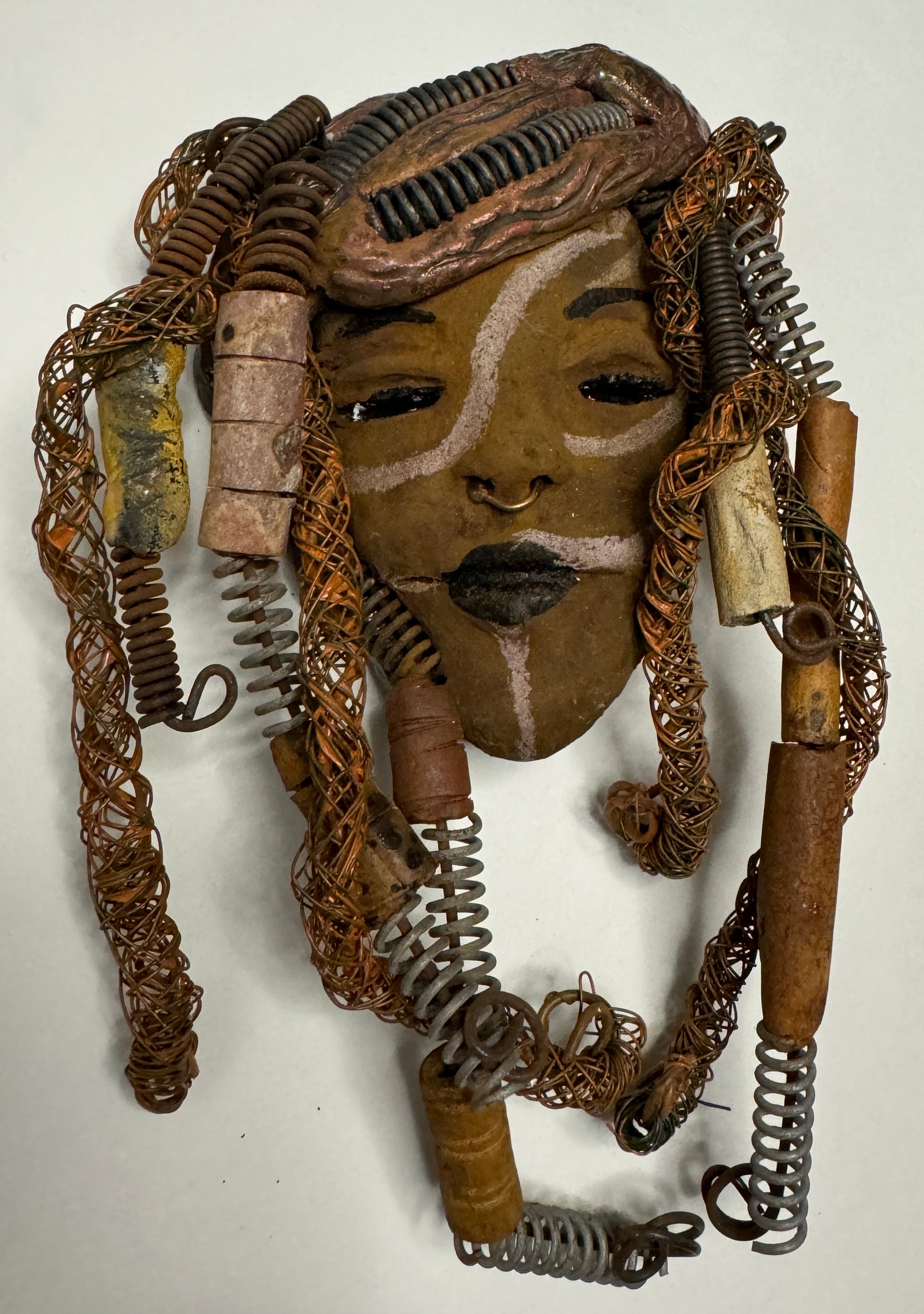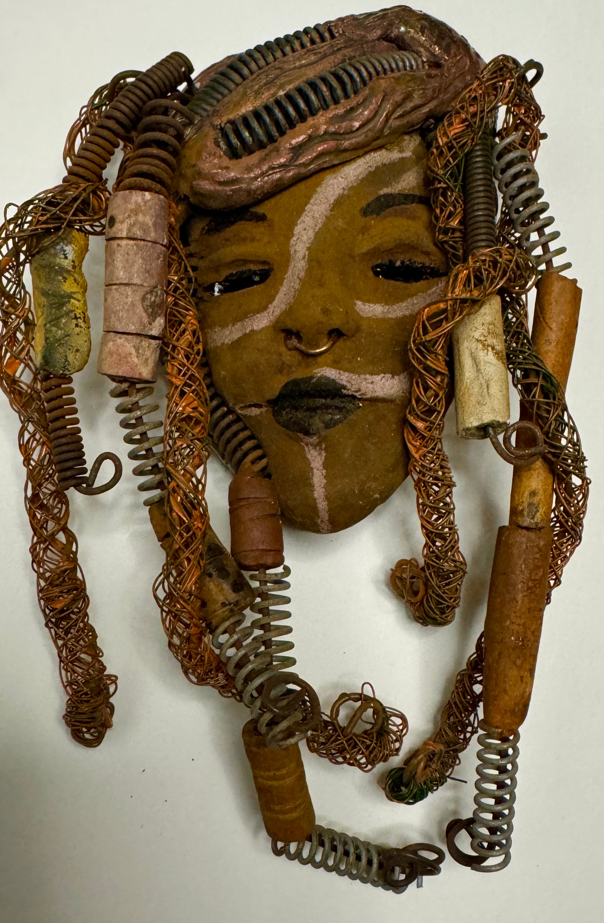 Weighing 6 oz and with a diameter of 5" by 8", Addo adds mystic to any wall, tree or shadowbox. His earthy braids, honey brown complexion and dark lips make him the perfect first piece from the HerDew mask collection. Shadow box not included with Jaleni's purchase.