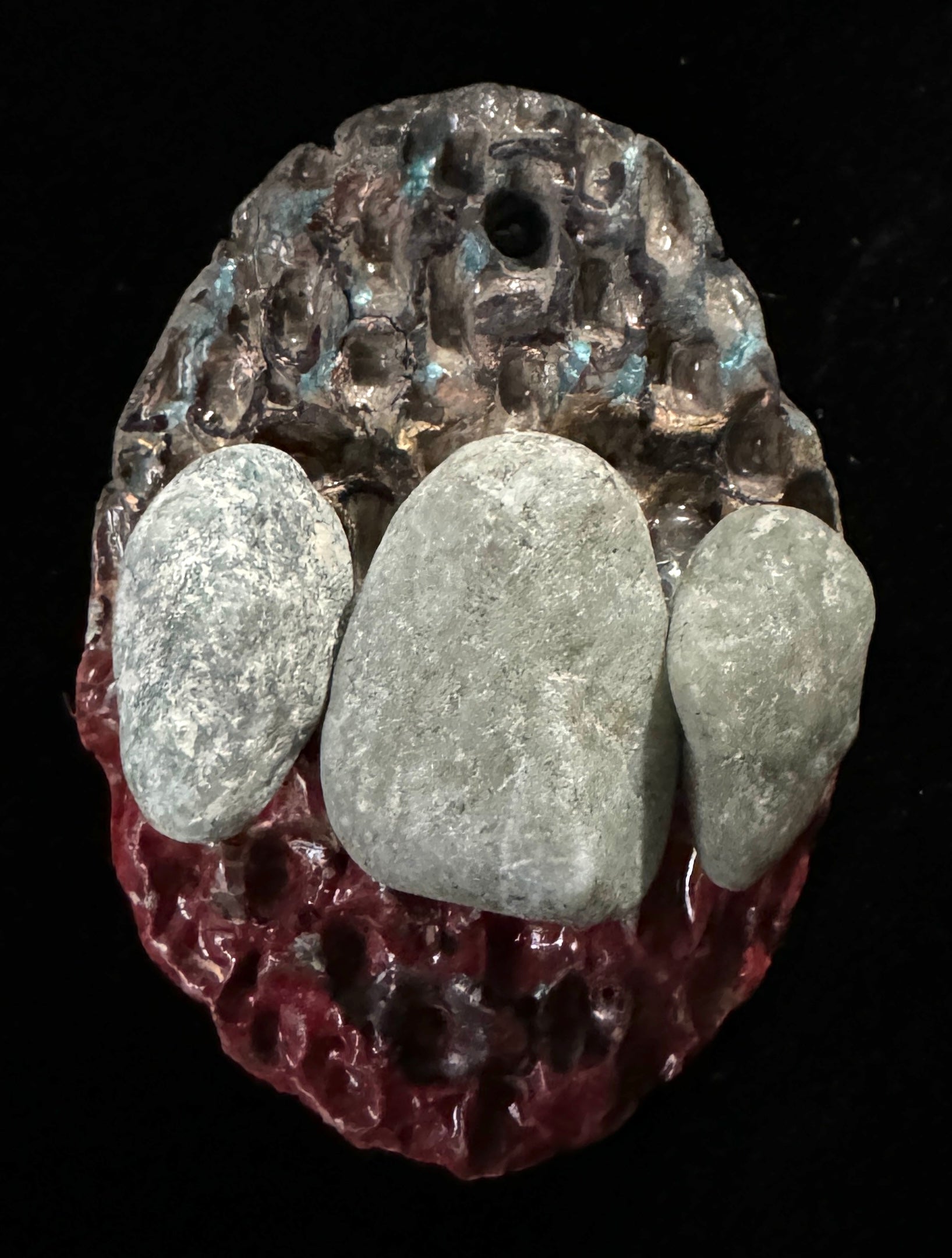 This 3" Art Magnet, fired using the Raku process and featuring multicolored glazes and earthy stone accents, is an ideal small gift. The magnet is exceptionally strong.