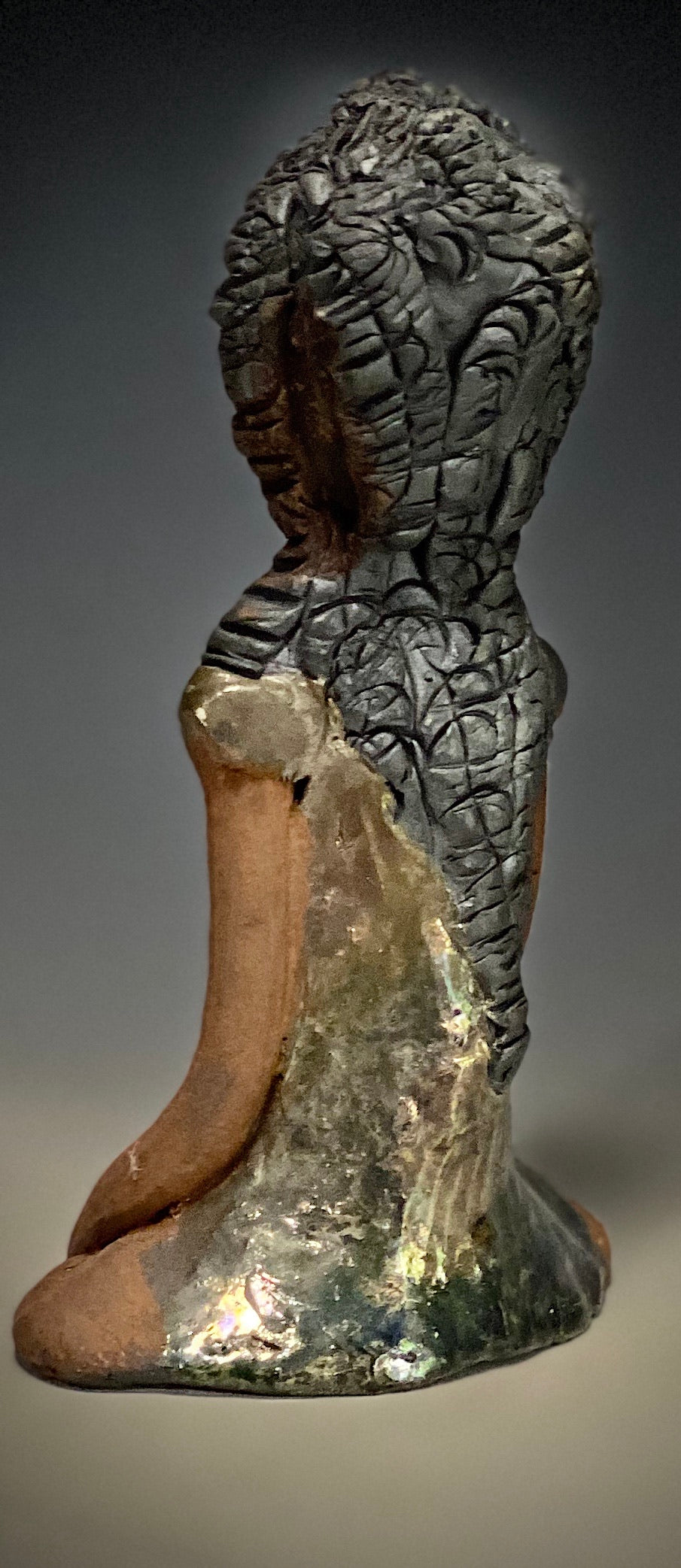 Introducing Brenda! She measures 7" x 4" x 2.5" and weighs 12 oz. With a honey brown complexion and a metallic green dress, she's a beautiful addition to the Herdew Collection. Her smoky black hair is crafted from clay, and her loving arms are at her side. Add Brenda to your home for a unique gift. Have questions?