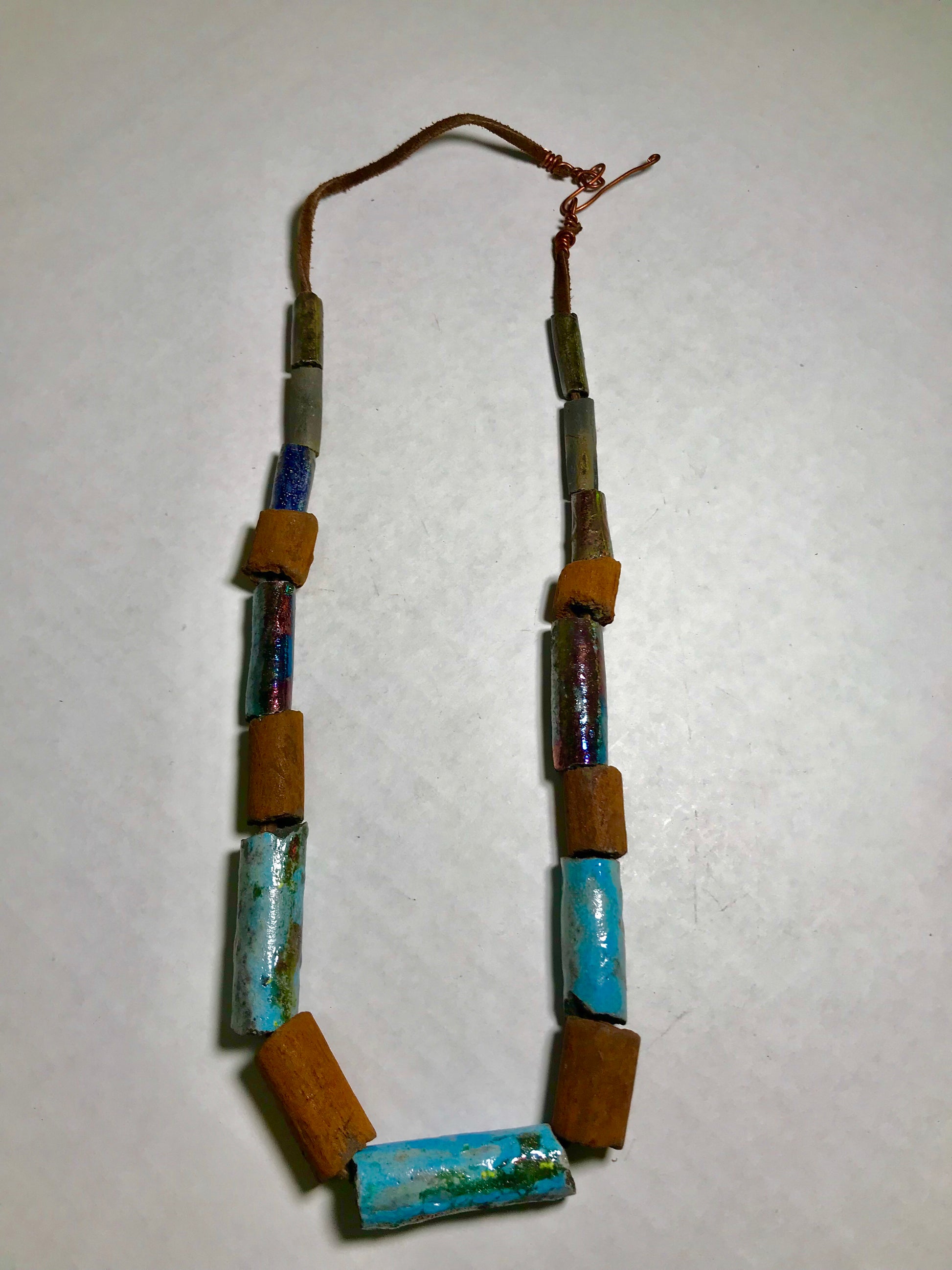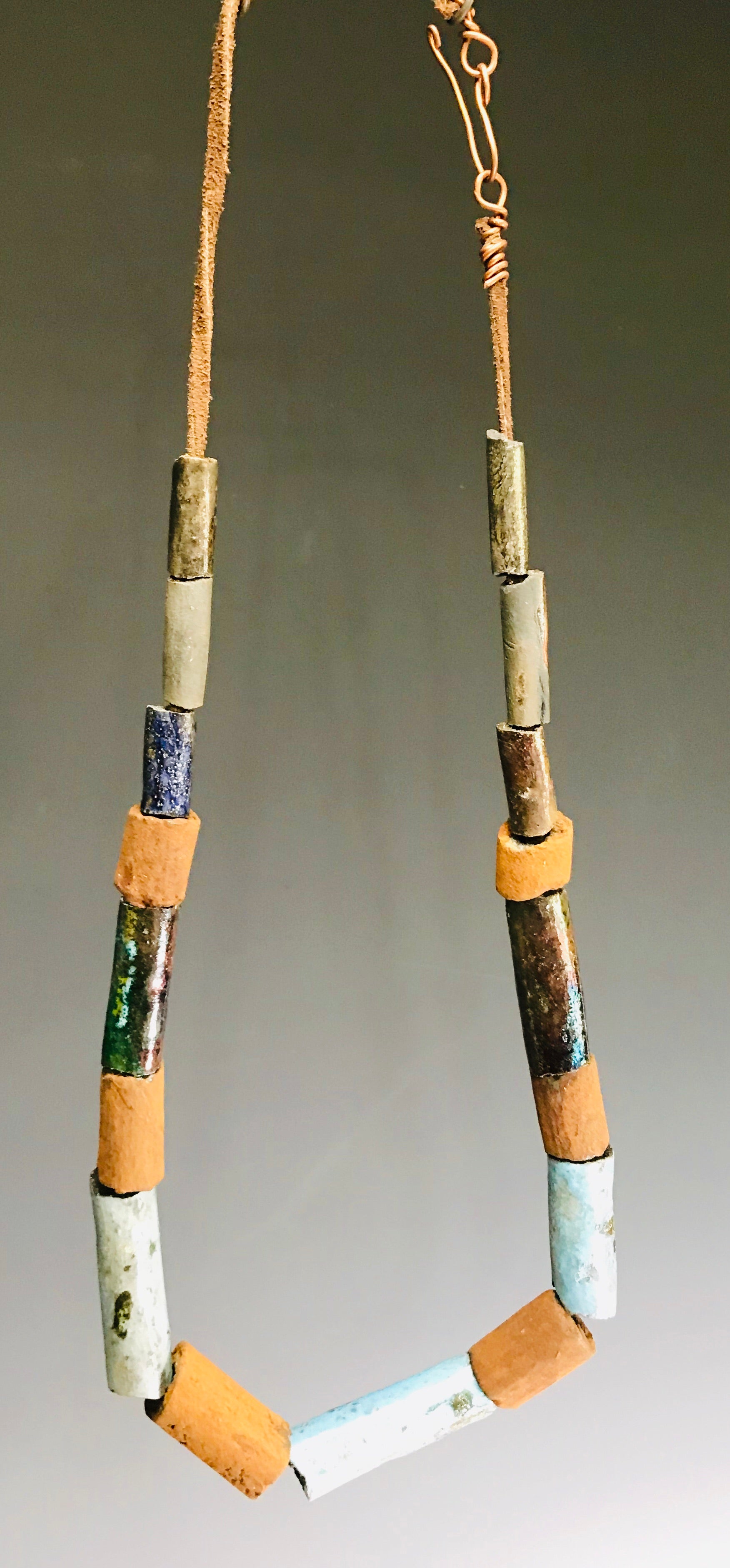 - This Tribal Raku Beaded Necklace has a 25” chain length and 10" vertical drop, featuring 17 multi colored copper raku beads.Got Questions????