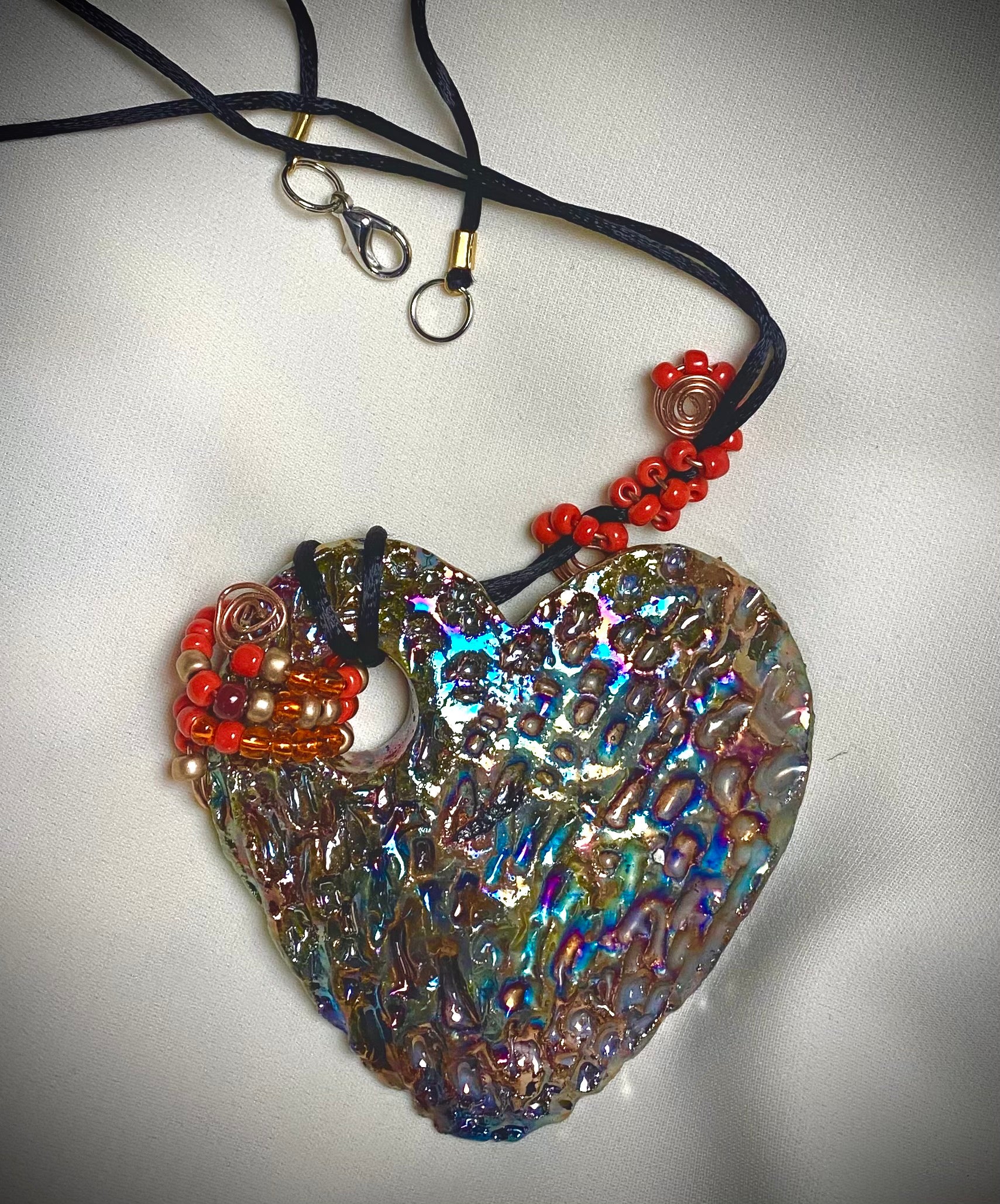 - This pendant has a copper gold metallic raku glazes that renders a unique translucent patina.