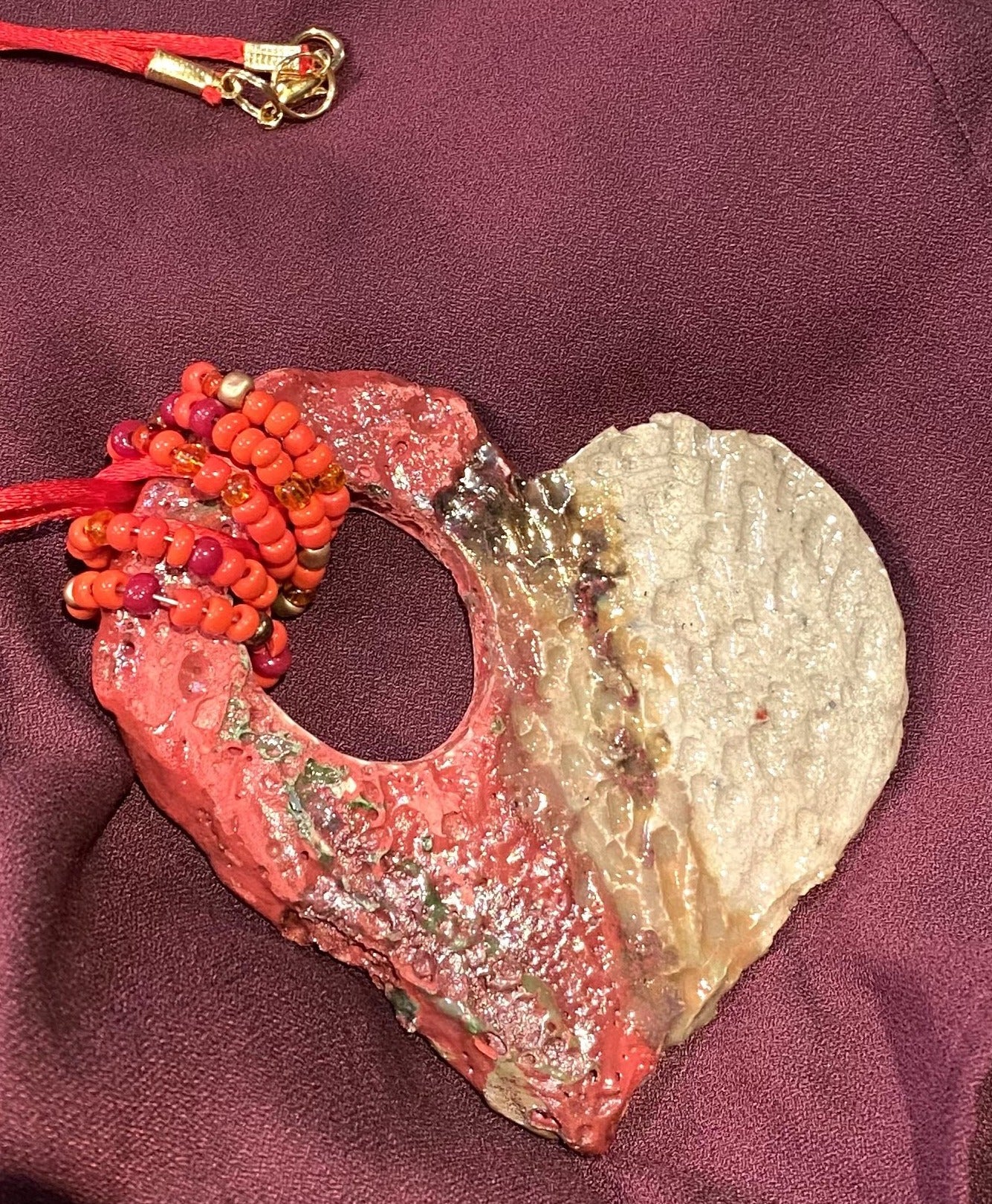 - It holds a spiral of red and gold mini beads on a spiral copper wire.