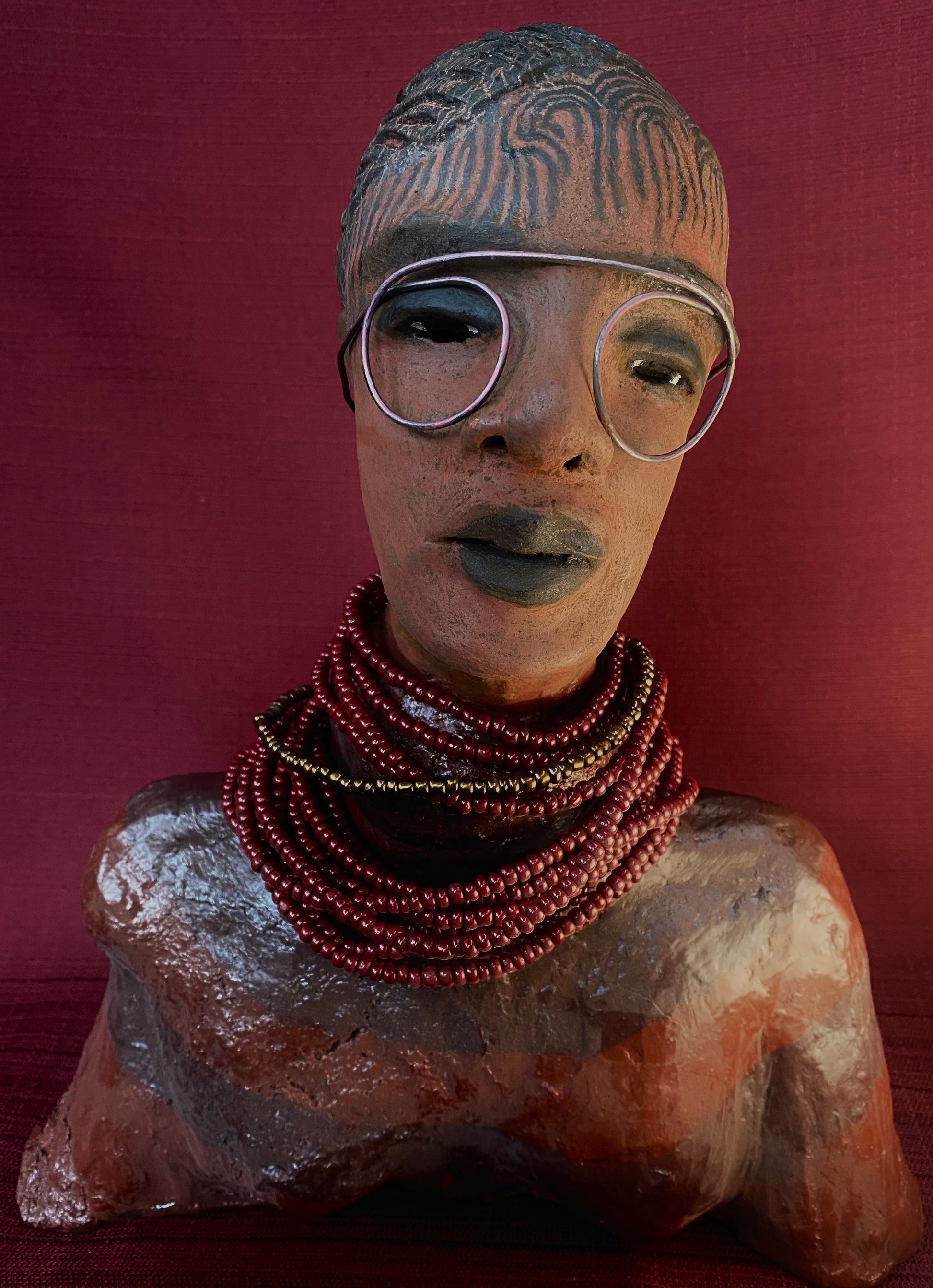 - She has mixed black and copper streaks of straight corn rolls of clay hair.
