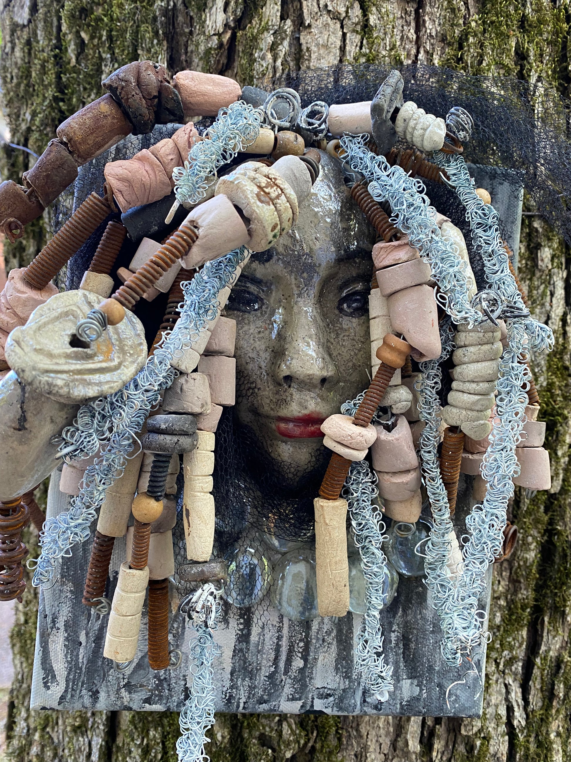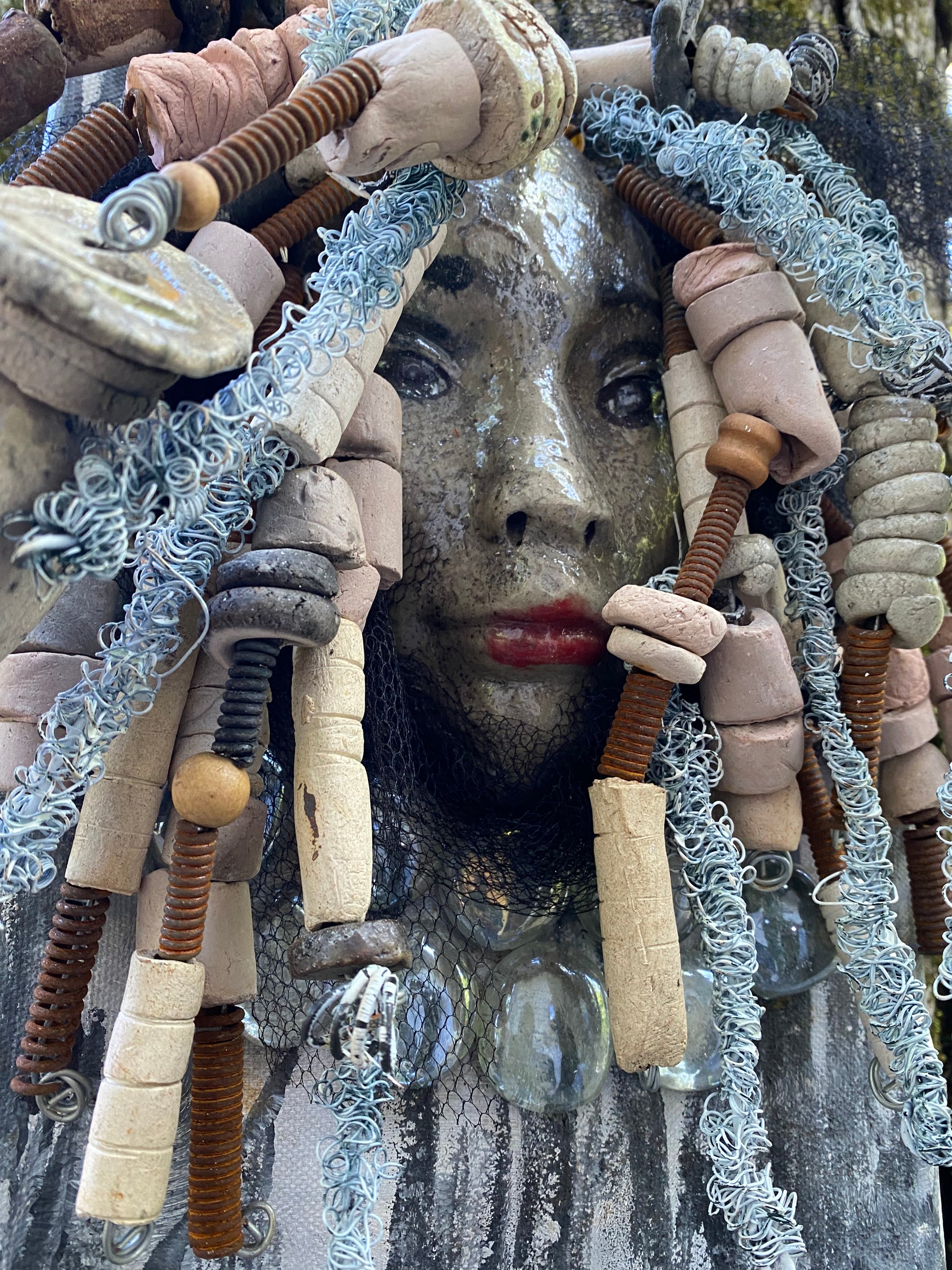 It took me 6+ hours to perfectly arrange her hair and add her raku beads.