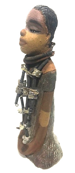 Greet Jana J! She stands 13" x 6" x 5" and has a weight of 3.09 lbs. Her two-tone honey brown complexion stands out, especially with a long strand of raku beads decorating her neck. Add her to your home for a unique touch! We provide free shipping and returns.