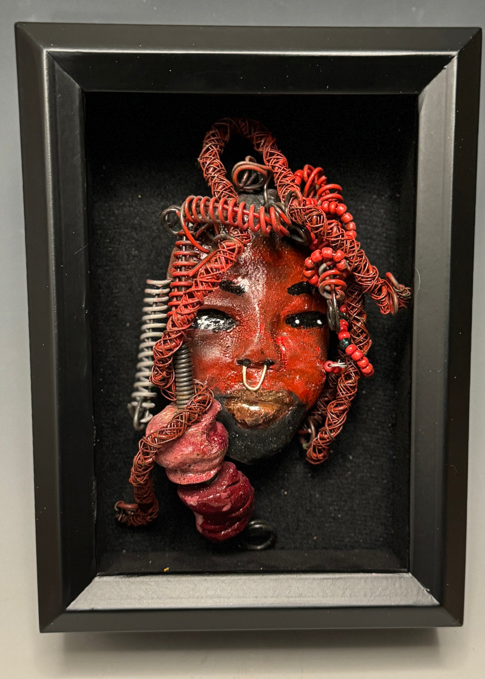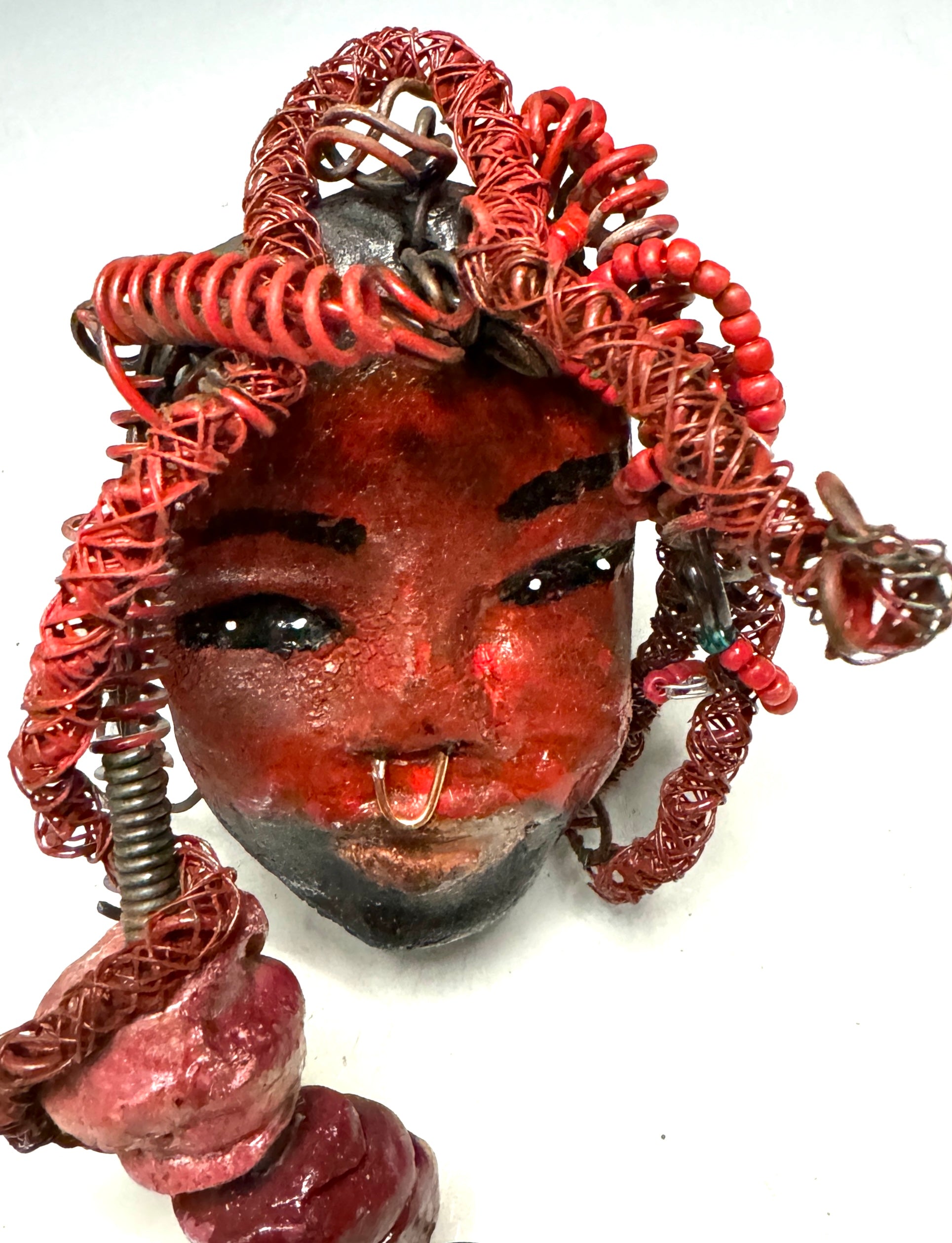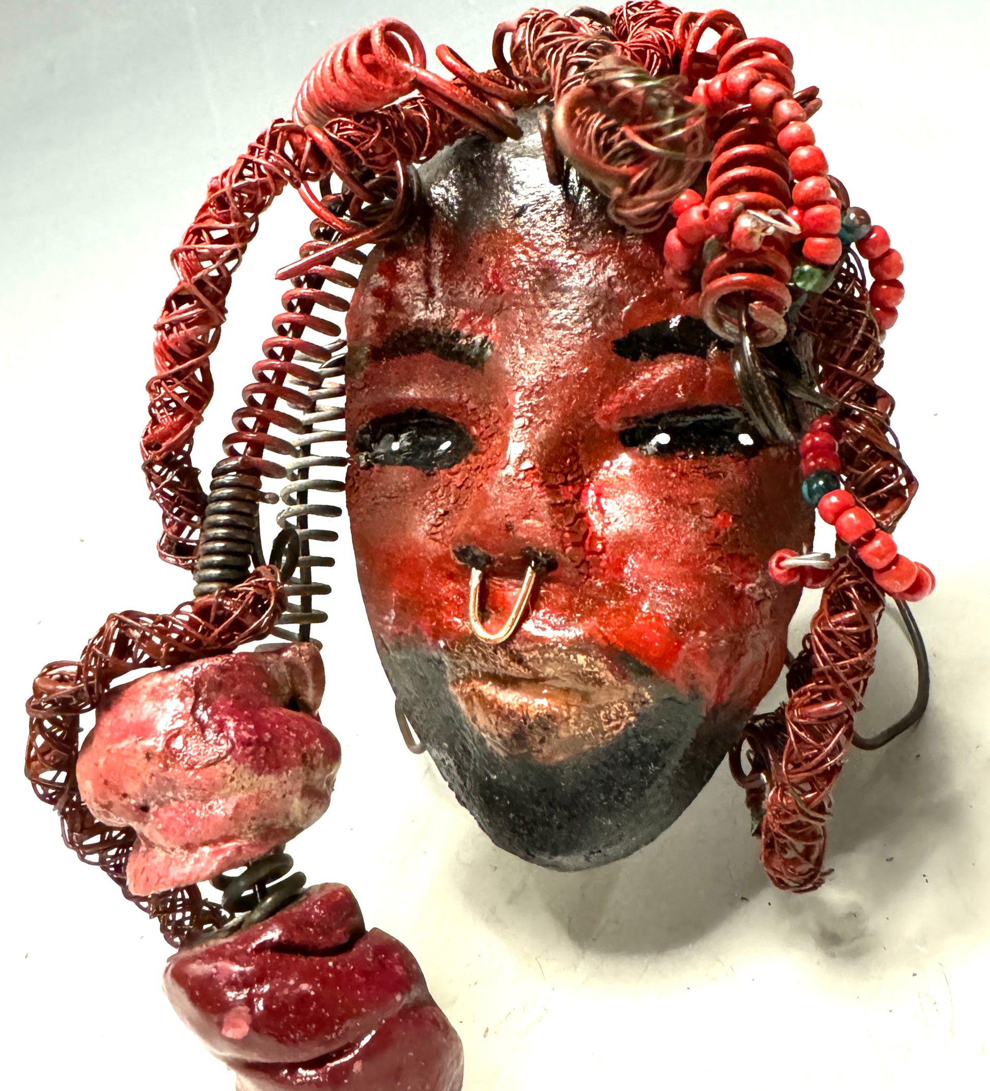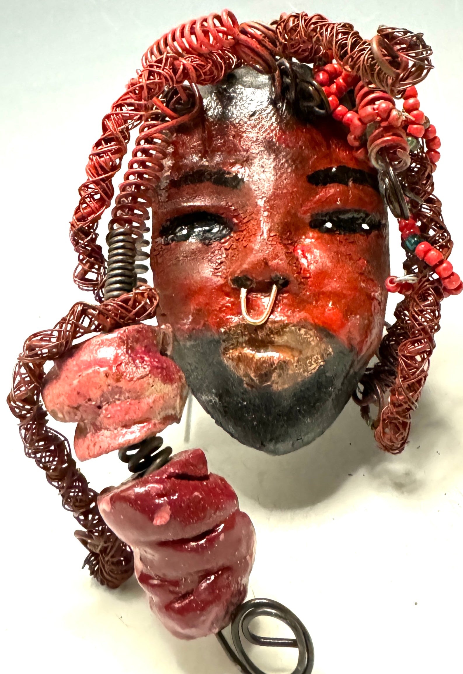Nelson's 5" x 7" dimensions make him an ideal accent for walls, trees, or shadow boxes. He features braided hair decorated with handmade Raku beads, and his skin tone is a beautiful reddish black. Equipped with more than 20 feet of premium 16 & 24-gauge wire for his hair, this modern sculpture will add elegance to any space – just add your own shadow box!