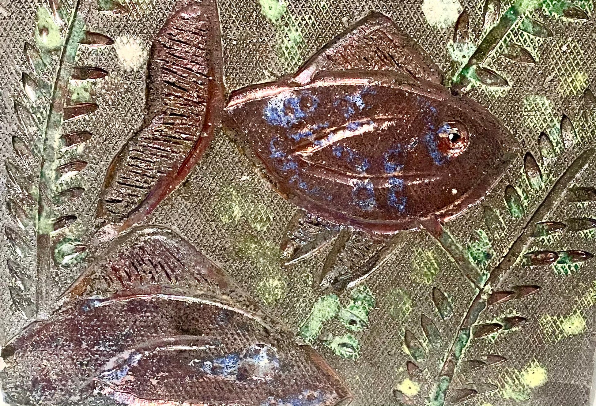 Metallic glazes Raku fired Fish Tile