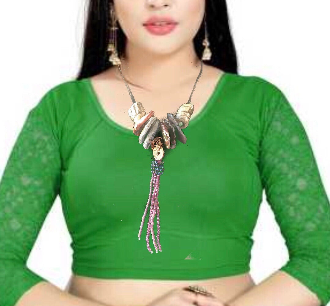 - 18" cord with extension chain 10" vertical drop 8 multi colored Raku beads over 40 mixed acrylic and wood beads Tribal! This piece offers a length of 18", including an adjustable 10" extension chain, for a total vertical drop of 8". The bold, multicolored Raku beads are complemented by more than 40 mixed acrylic and wood beads. Perfect for creating a dramatic, tribal-inspired look.