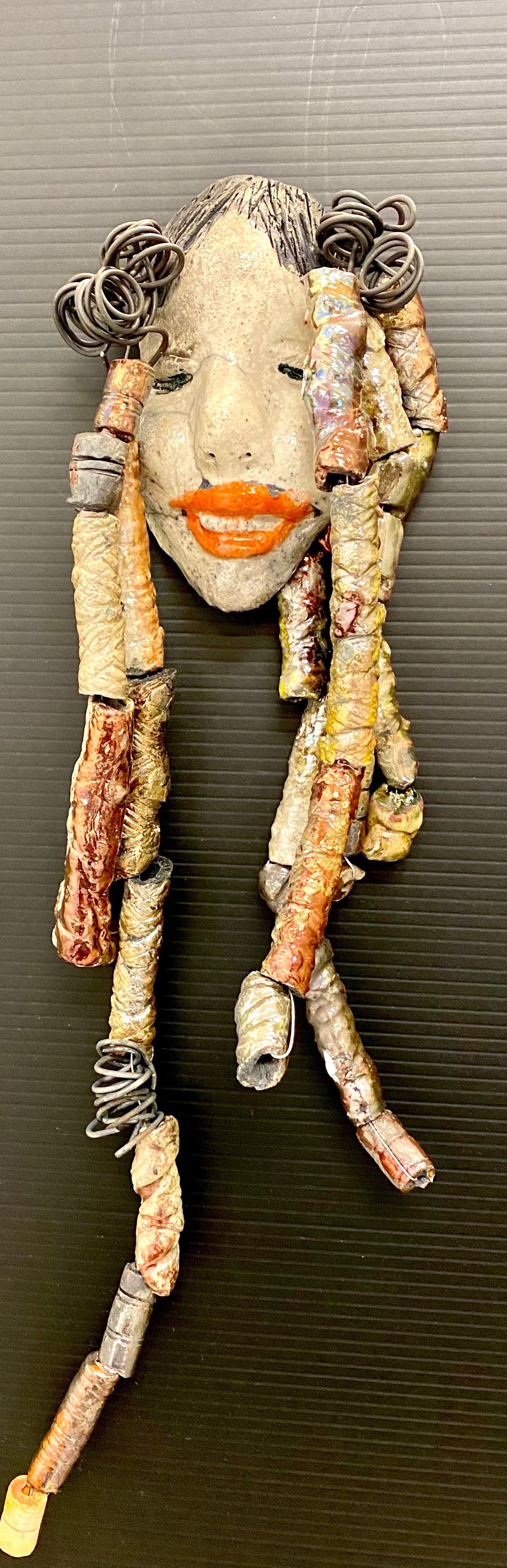 Trinity was created out of my awe-inspiring experience at the Smithsonian Museum of African Art. Measuring 5”x 13” and weighing 11ozs, the figurine features an off white complexion with ruby red lips and five dreads of beads and spiral wire coils of hair. Install her in your home today! Have questions? Reach out!